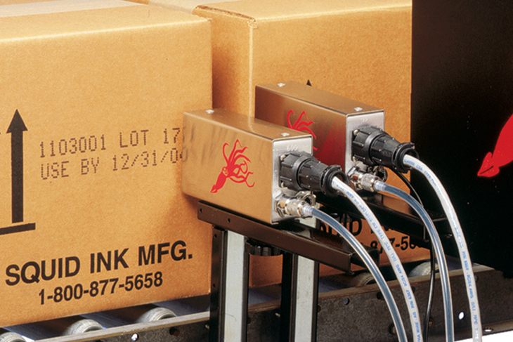 Squid Ink的SQ2喷码机可让生产商们在各种产品表面实现高质量、低成本点阵式喷印。SQ2在当今工业领域提供了每个字符低成本的喷印。用户可在两种类型机器中选择:水基喷印系统用于在瓦楞纸箱、纸或木材等多孔材质表面喷印;或者酮基喷印系统用在塑料、薄膜、金属、玻璃等无孔材质表面喷印。