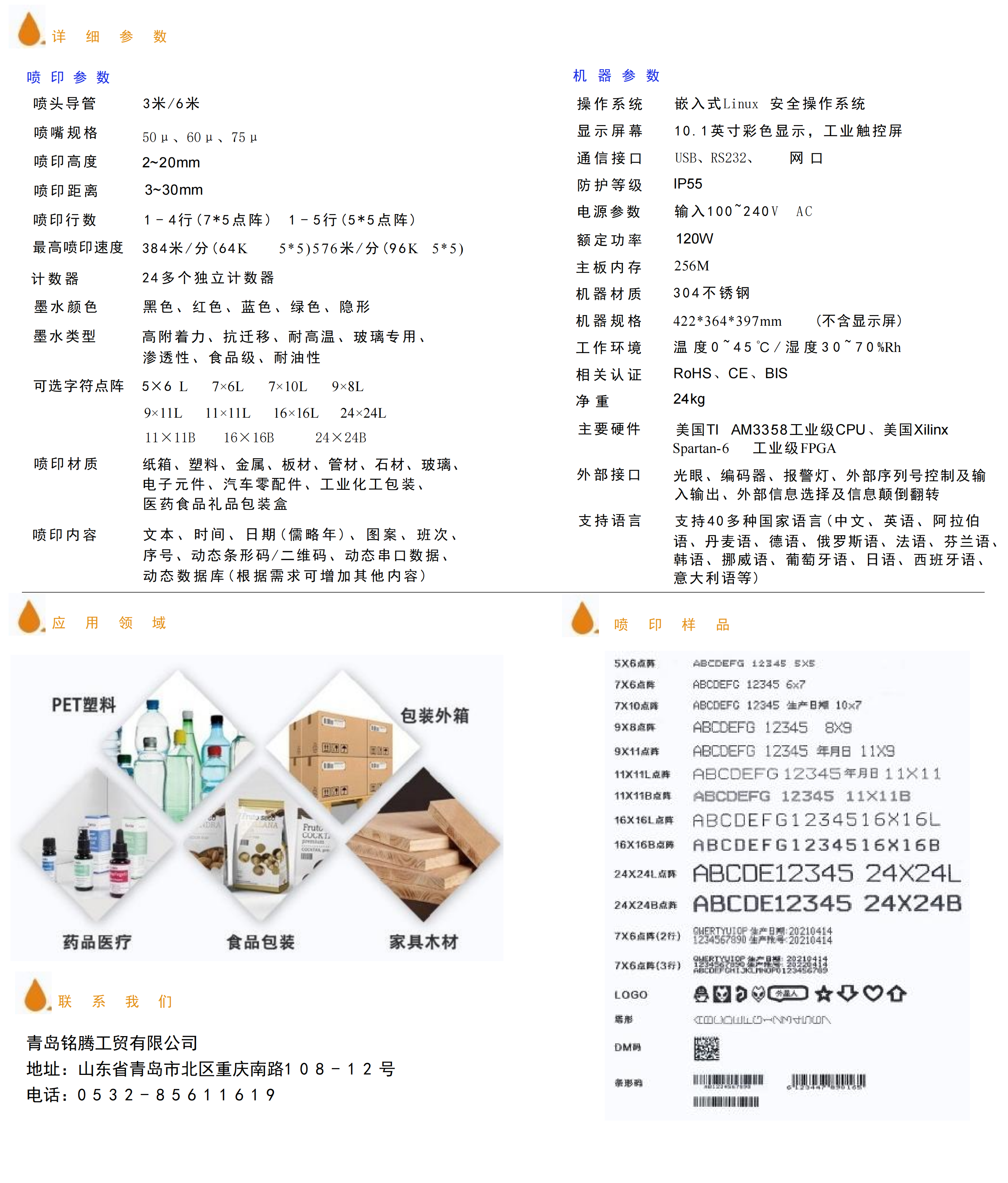 ⑦全工业级硬件,确保在各种复杂应用场景喷印稳定可靠,支持追溯、防伪系统、强大GS¹二维码和条码功能,能满足客户各类变码应用需求 。